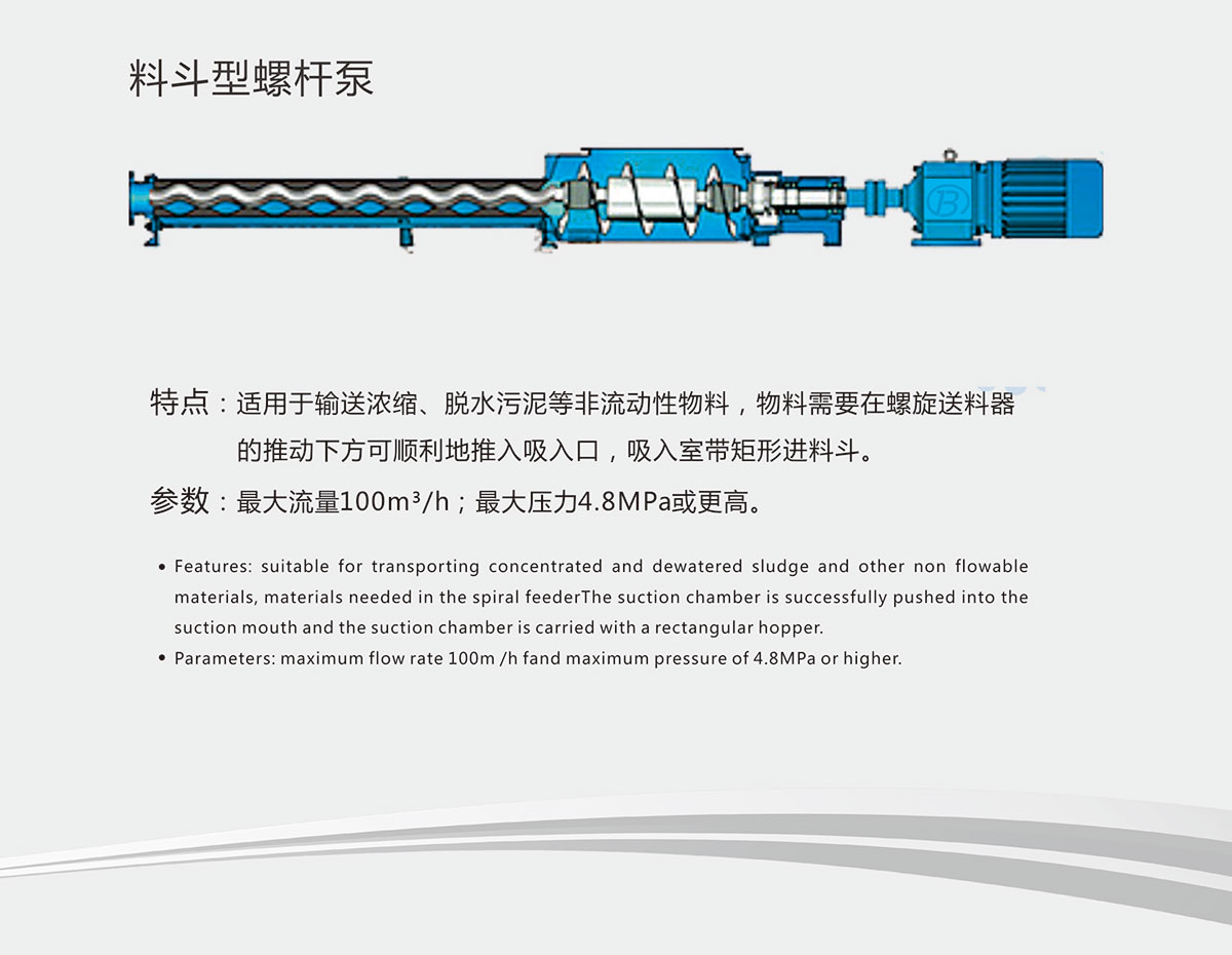 特点1 : 适用于输送浓缩、脱水污泥等非流动性物料,